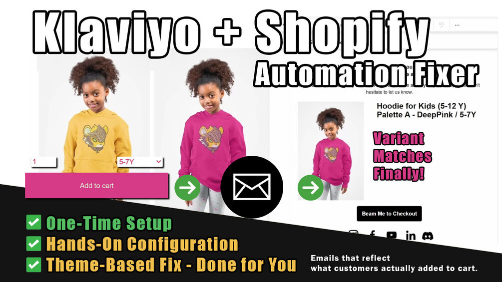 Let me fix the Klaviyo Add to Cart image bug for you. If your emails show the wrong variant (color), I’ll personally install and configure the solution so Klaviyo always receives the correct image and product data — no code or setup required on your end.